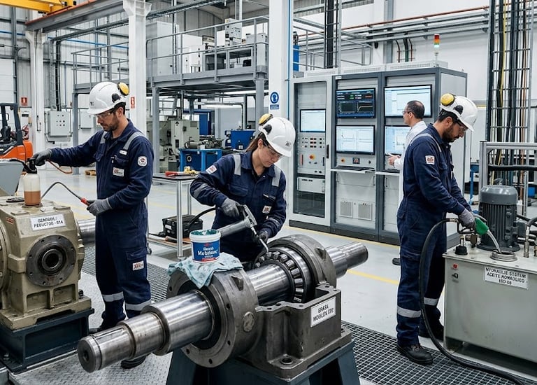 Grasas y aceites para engranes, rodamientos y sistemas hidráulicos.